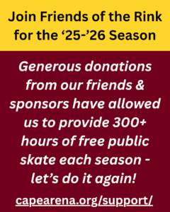 Subscribe to our newsletter and receive the latest updates, rink news, events, deals and more from the Cape Community Arena Group!Â